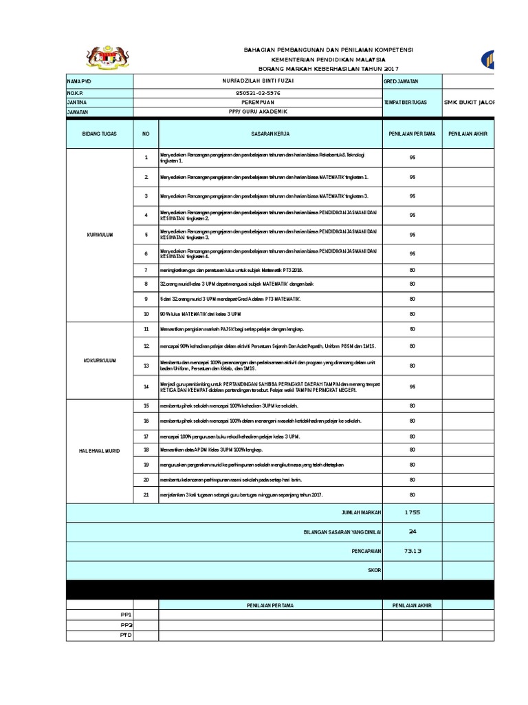Contoh Borang Keberhasilan Guru 2022 Muat Turun Cara Isi Semak Markah Portal Cikgu